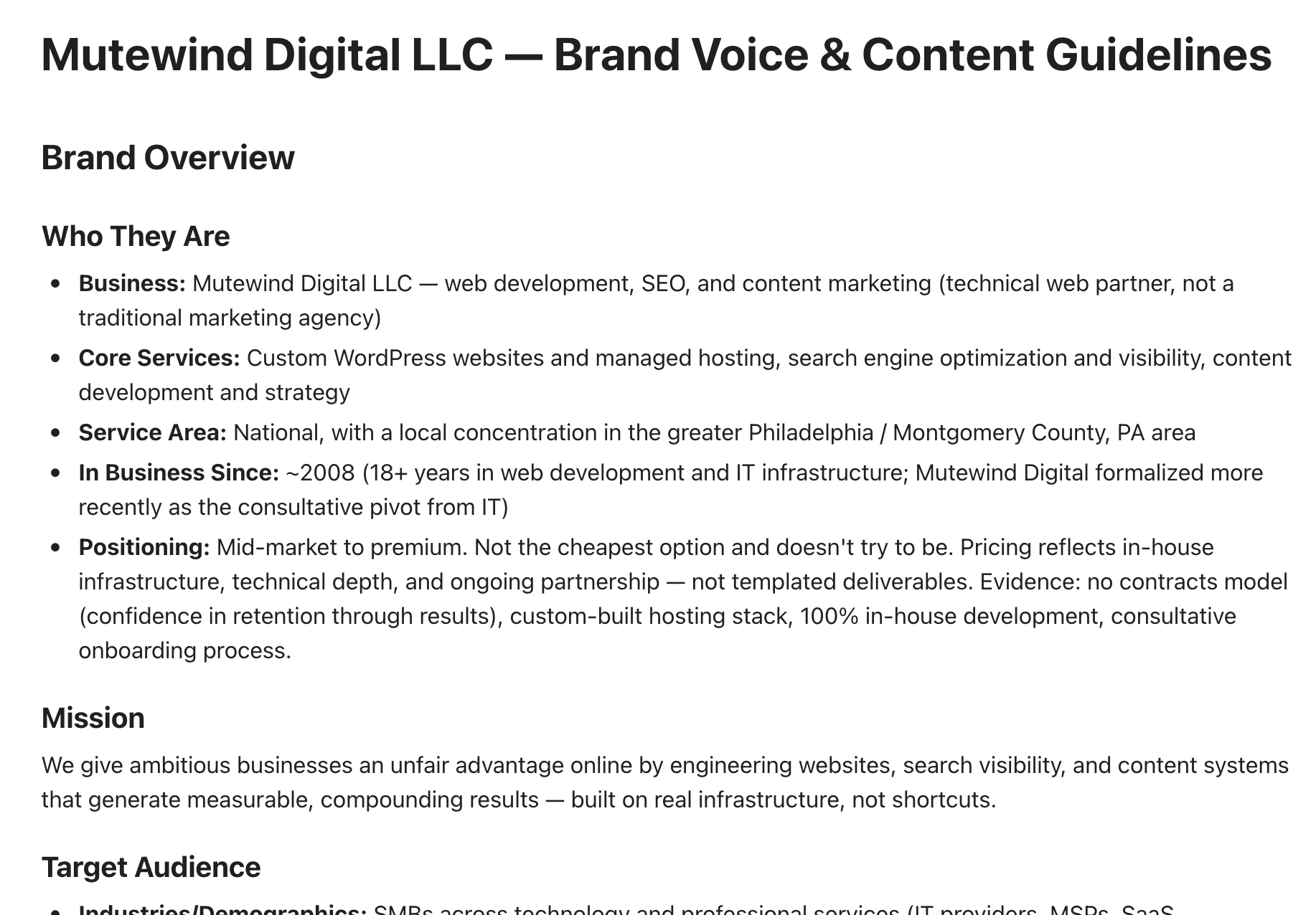 We start with your industry, services, audience, and geography.